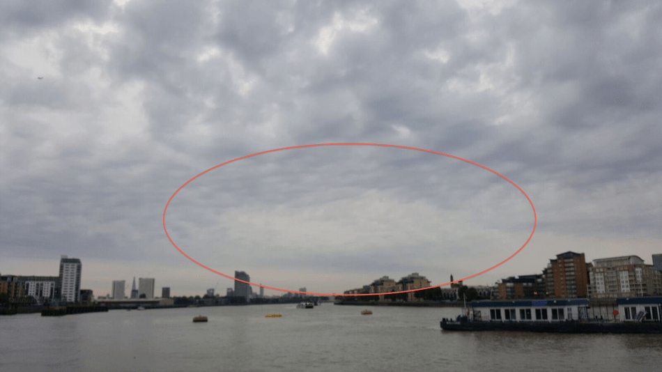 The image heading this post shows a photo taken on a phone camera by a close associate of Portals of London. From near Deptford Creek he watched for several minutes as clouds above Limehouse “moved in a strange, very slow, swirling movement”, in contrast to their general easterly motion across the sky.